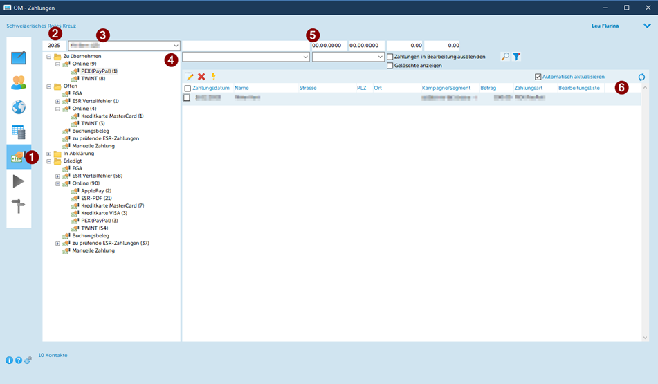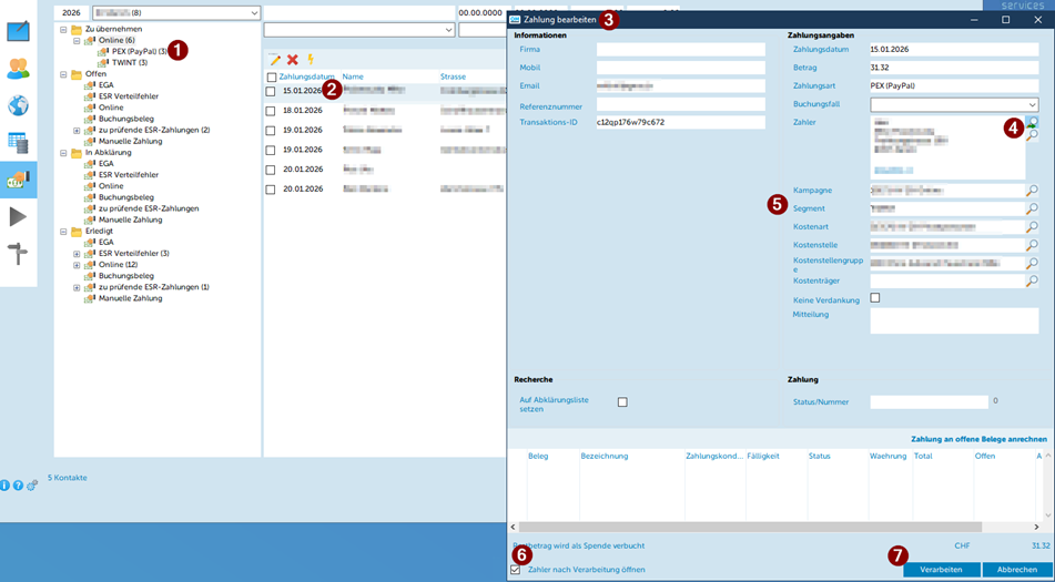 - Ordner Zu übernehmen – Online oder Offen – Online öffnen. Ziffer in der Klammer gibt an wie viele Spenden zu verbuchen sind.